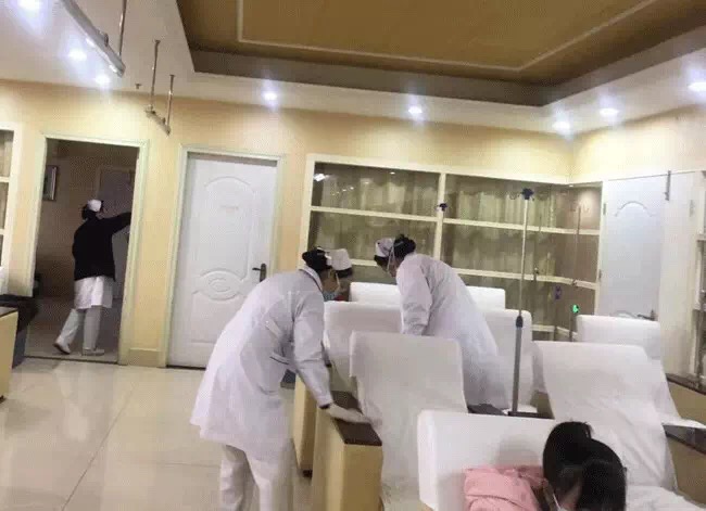 做好院内感染的防控,为了保护母婴的健康,最大限度降低交叉感染的风险。医院大厅,走廊每天用84消毒液进行两次消毒;电梯内按键每2小时用消毒液进行擦拭;门窗时刻打开通风。医院各科室内、公共区域,在原保洁的基础上增加对门窗扶手,座椅及其他物体表面消毒频次。在做好就诊防控的同时,各科室医务人员自身也做好个人防护,如上班戴口罩,做好手部消毒。