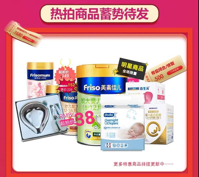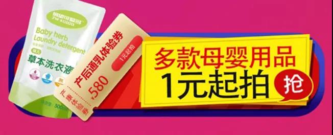 多款母婴产品、体验券通通1元起拍!
