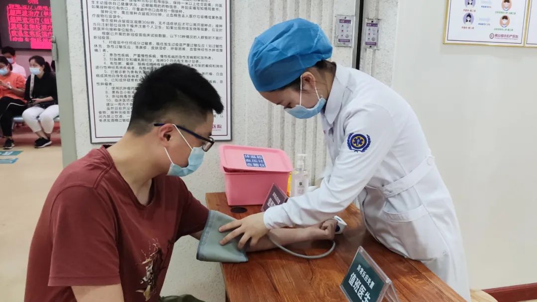 主动请缨,全院一心。为确保各项工作顺利推进,我院志愿服务者都十分有耐心地引导市民群众有序排队测量血压、登记、接种、留观。“最近有哪里不舒服吗?”“请在这里签名。”“打完针请观察半个小时再走……”这样普通的话语每天都要重复很多遍。