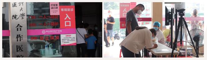 2.分流入院,日常接诊和疫苗接种两不误,工作人员在入口处严格按照疫情防控要求,对每位入场接种人员进行体温检测。