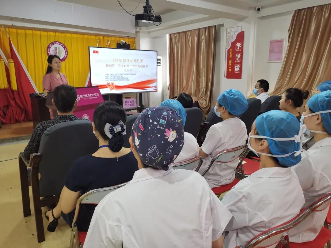 5月21日下午,佛山市委党校统战理论教研部主任李建丽来到了佛山都市妇产医院,为我院党支部成员、团支部成员、医务工作者作题为《党的百年辉煌与经验启示》的主题宣讲。