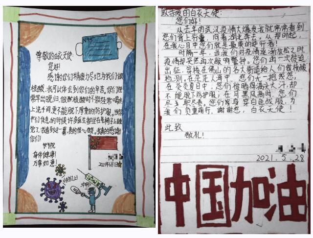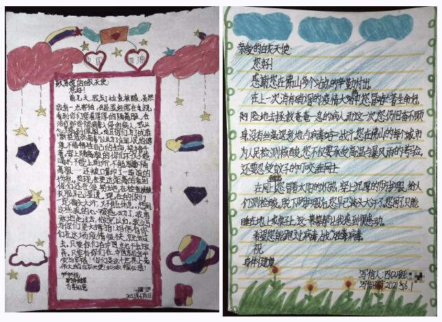 温馨提示:2021年6月3日,佛山都市妇产医院收到了25封特殊的来信。 来自敦厚小学四年级二班的同学给我们的医护人员送来了感谢信,为所有奋战在抗疫一线的白衣天使们加油打气! 所有信件都是小朋友们手写手绘的,好暖