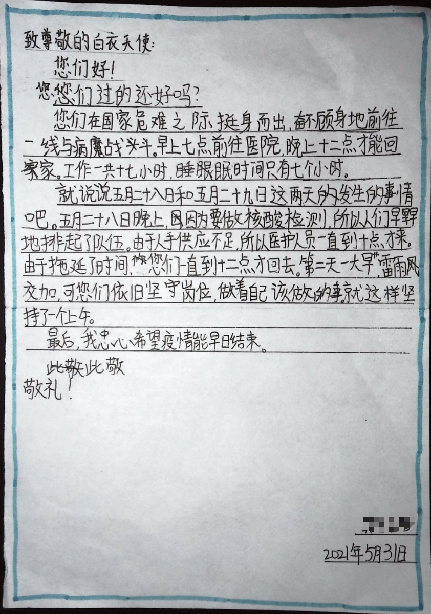 这些手写信让白衣天使们惊喜、感动、自豪、有力量