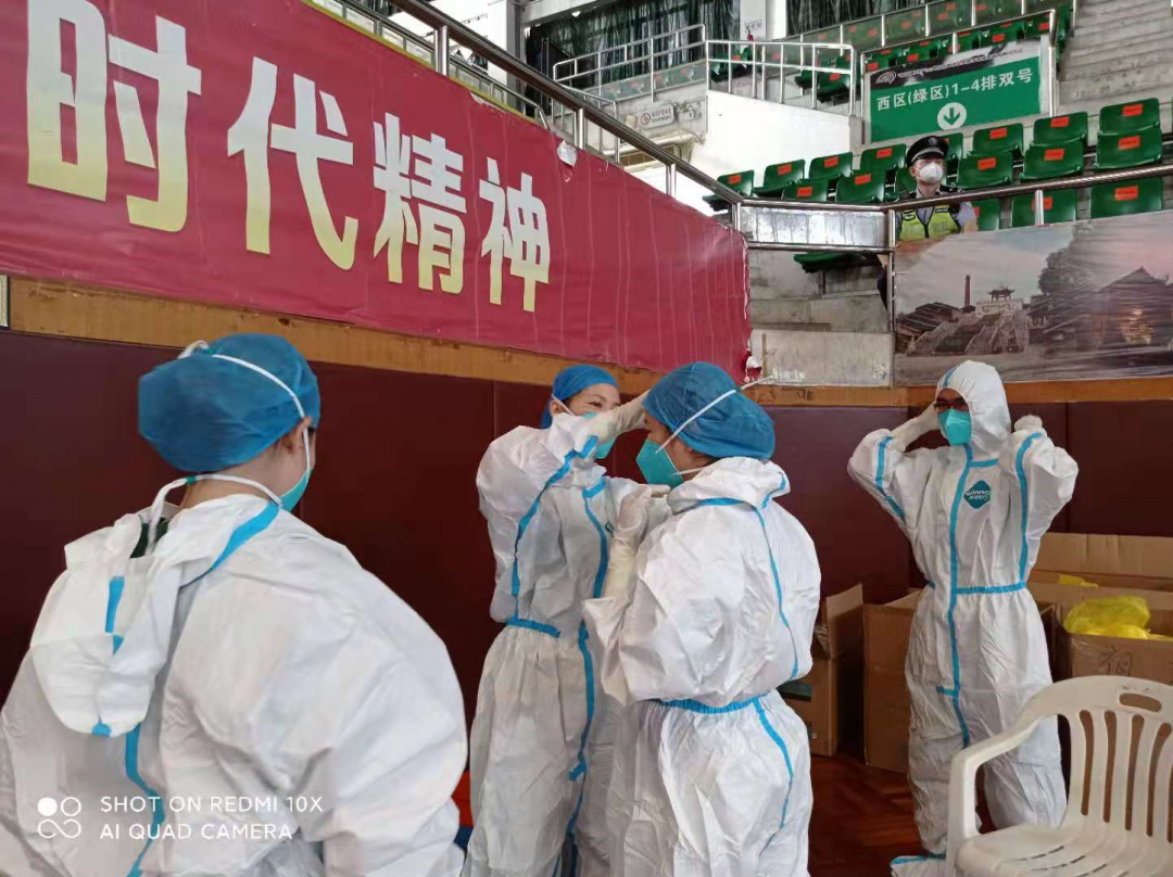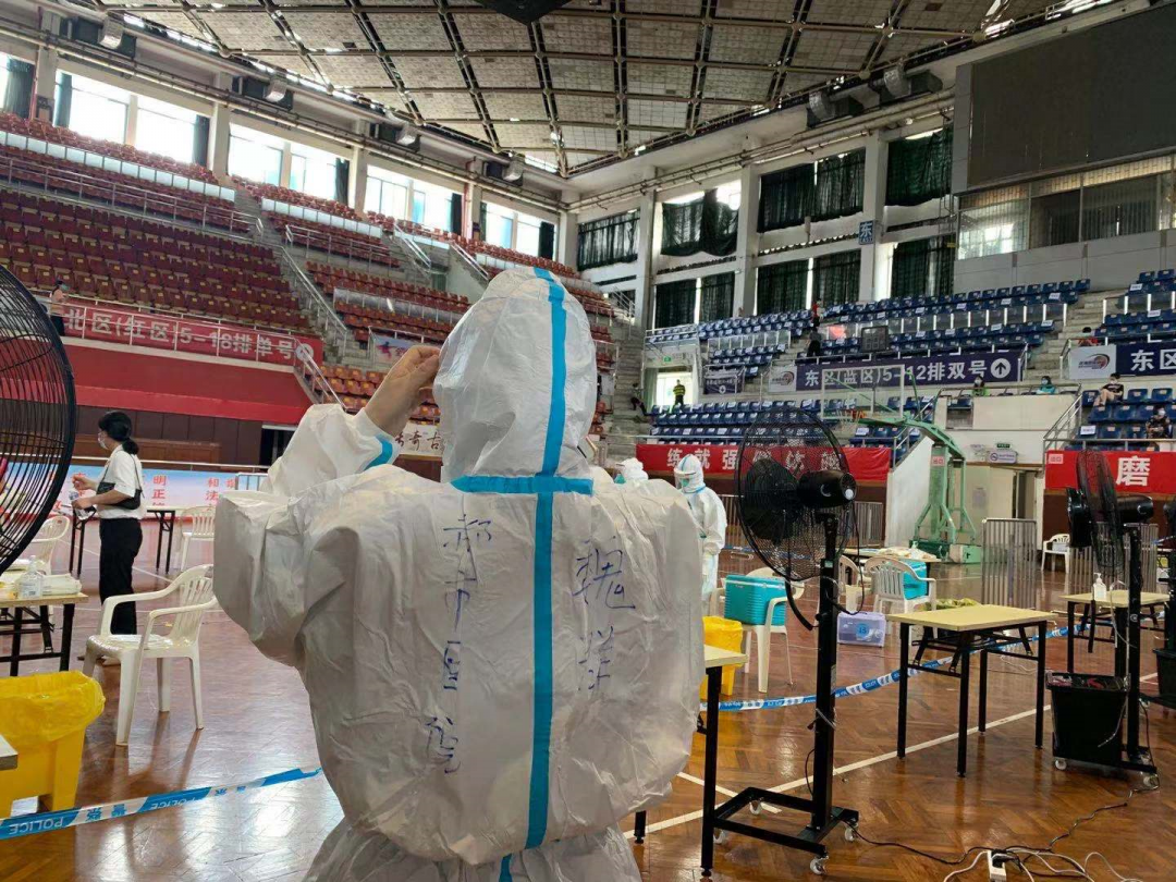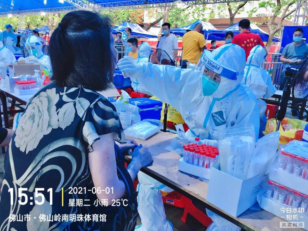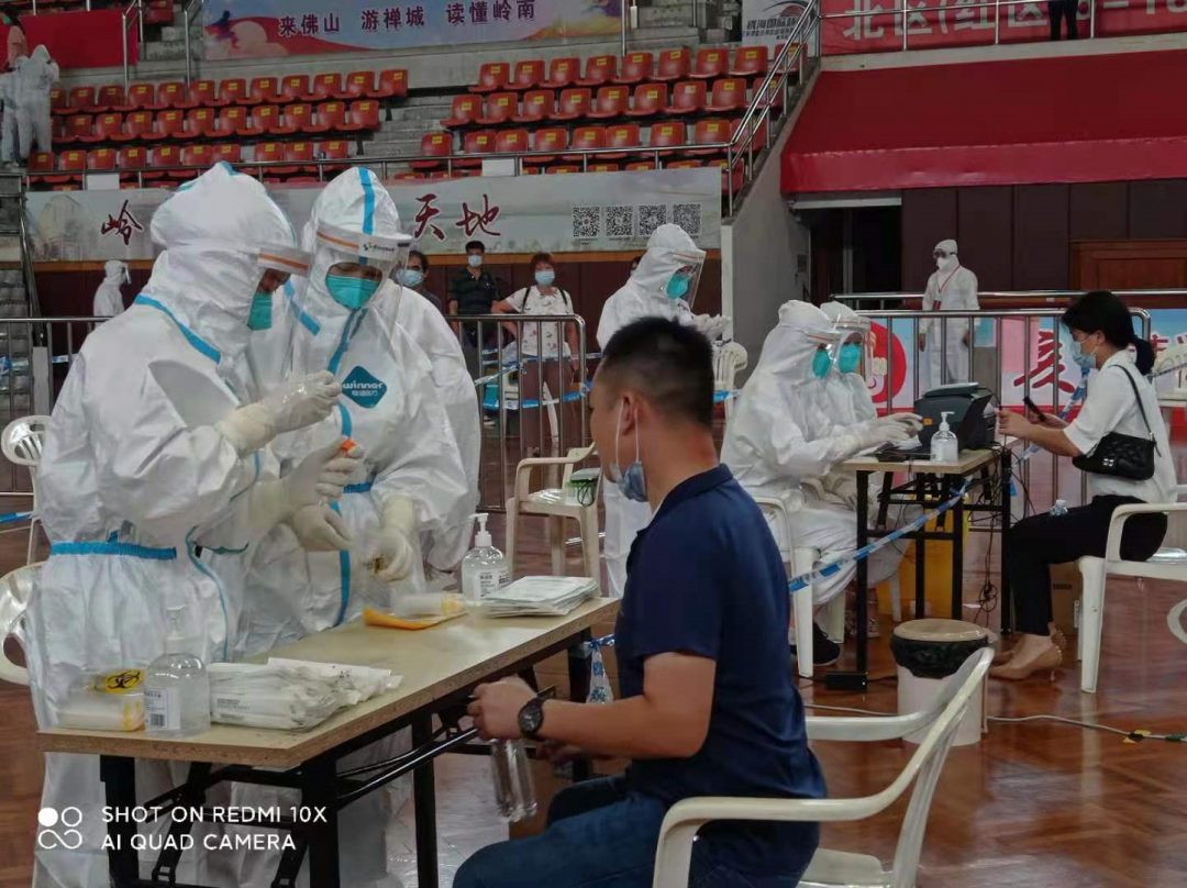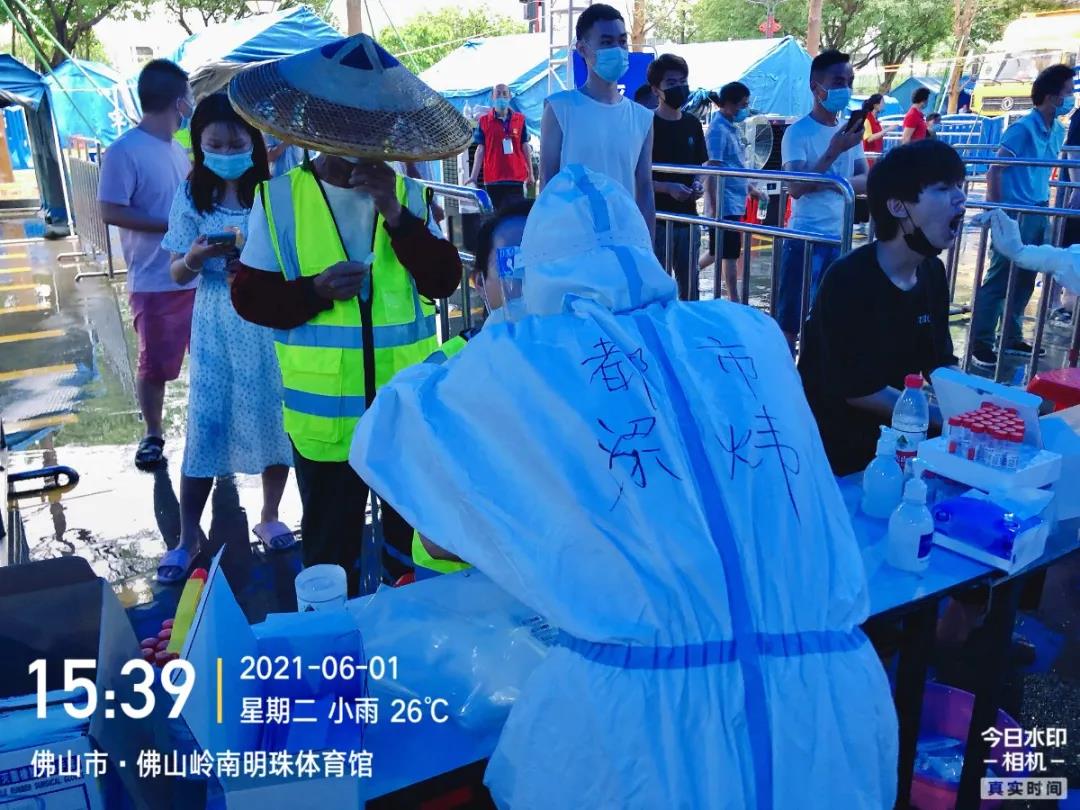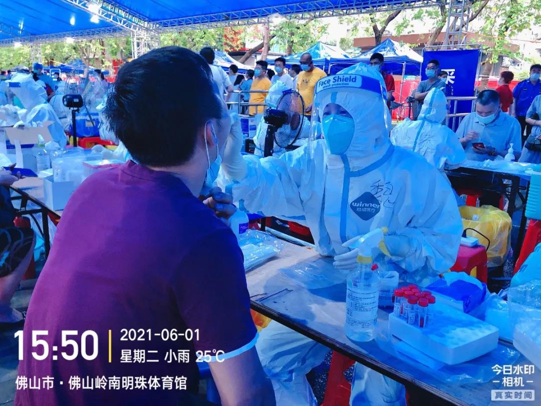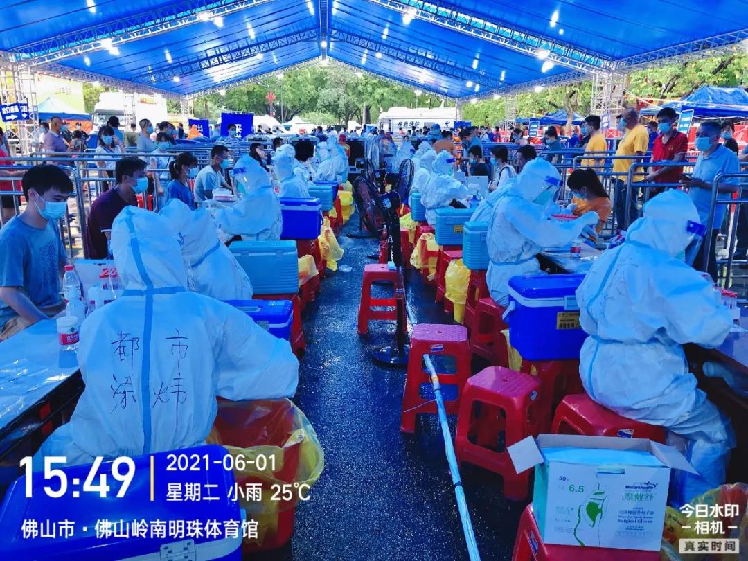 即便是高温+阵雨的天气,医护人员也没有休息。接卫健局通知,魏主任带领着我们的核酸检测队伍再出发,这次是佛山体育馆...