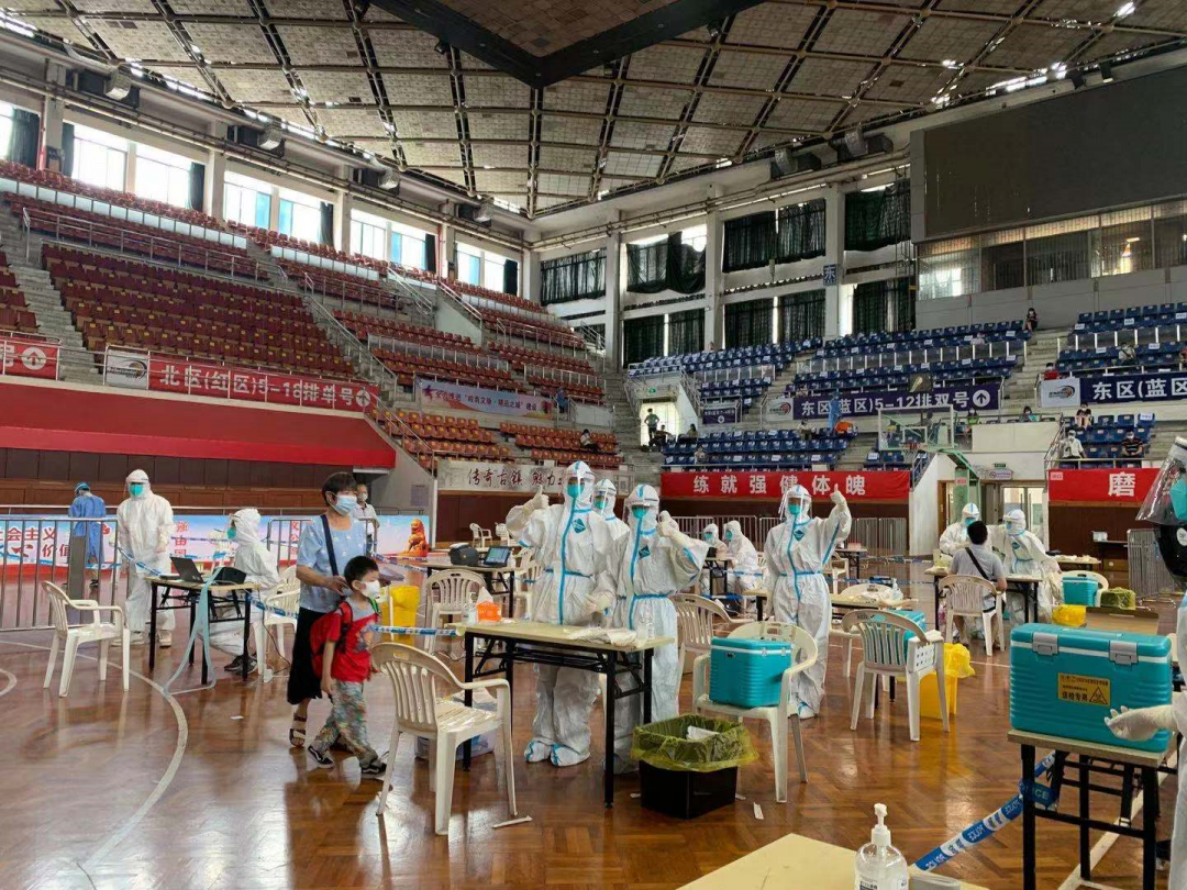 接区卫健局通知,我院门诊魏群主任带队前往岭南明珠体育馆进行核酸检测采集,医护人员+佛山街坊,一起筑牢防线。
