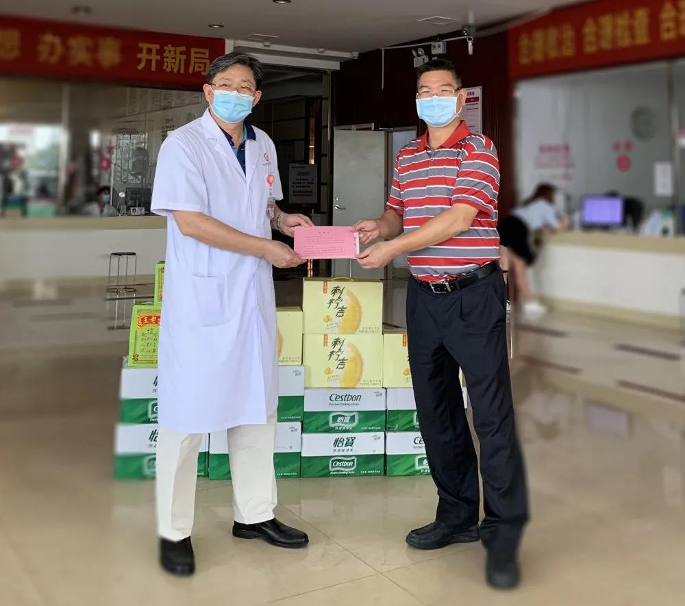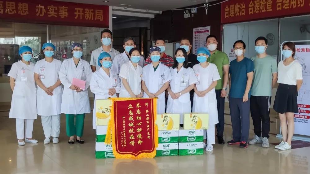 △祖庙街道办送来感谢信、锦旗和饮品,慰问我院抗疫医务人员