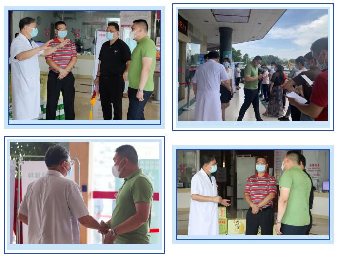6月11日下午,祖庙街道党工委委员庞志成、祖庙街道驻敦厚村工作队长丁志斌、敦厚村党支部书记陈志辉及敦厚村委会领导班子全体成员来到佛山都市妇产医院,慰问我院核酸采样医务人员,并将锦旗、感谢信送到我院舒玉林院长手上,对佛山都市妇产医院在疫情防控期间为祖庙街道所做的工作表示衷心的感谢。