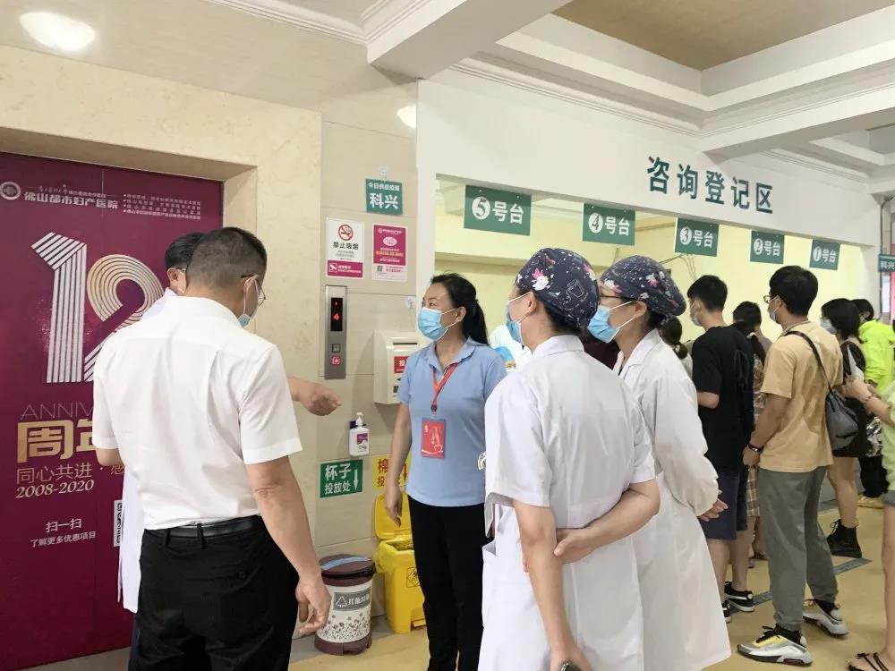 2021年6月13日下午,禅城区卫健局二级主任科员郑思海、卫生应急股长王昌南、院感专家朱云联一行到我院进行疫情防控督查,并慰问坚守在防疫一线的医务人员。佛山都市妇产医院院长舒玉林、护理部主任孙保平、护理部副主任刘丹陪同检查。