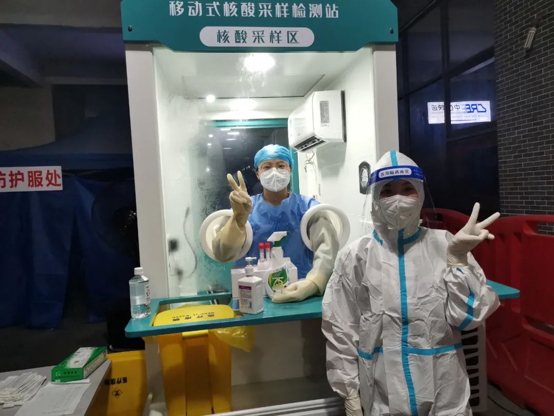 即使如此,我们的采样人员,从没有一丝退缩,一直严格按照排班轮流上岗。面对深夜晚点到站旅客,面对长长的待检队伍,我院医护以极大的工作热情全身心投入,检测现场井然有序。