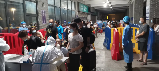 从8月8日起,我院医护就开始了佛山火车站的核酸采样工作,两人一组,三班轮流(04:00点-12点,12:00-17:00,17:00-00:00),为中高风险地区及省外来禅人员进行免费核酸检测,不漏一车,不落一人,守住佛山疫情防控安全底线,守护着我们城市每个人的健康安全!