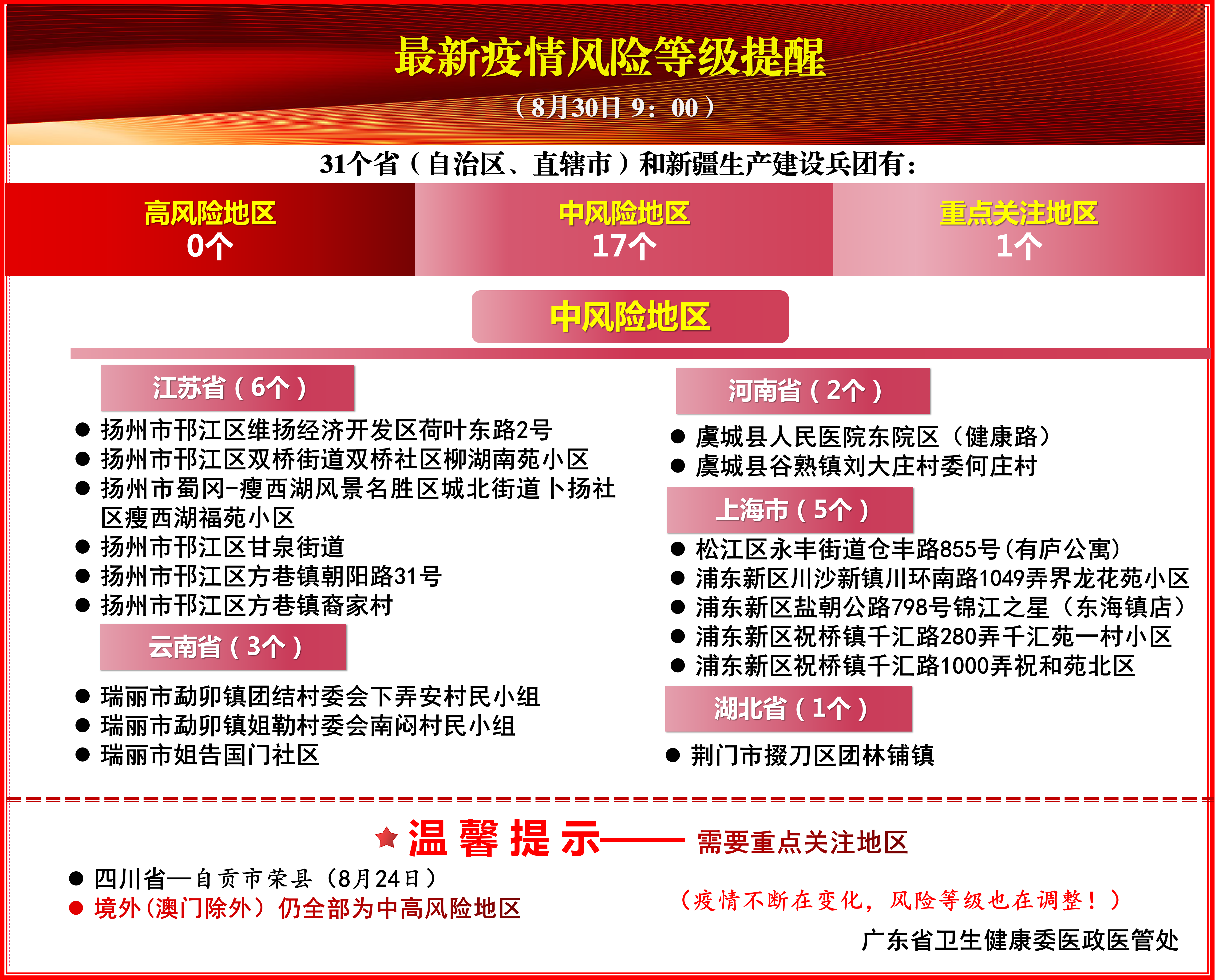 经过全国防疫人员的努力,本次本土爆发的疫情也得到控制,截止8月30日,全国高风险地区清零,中风险地区也大幅度减少,我院负责的佛山火车站核酸采样的工作也圆满结束了。