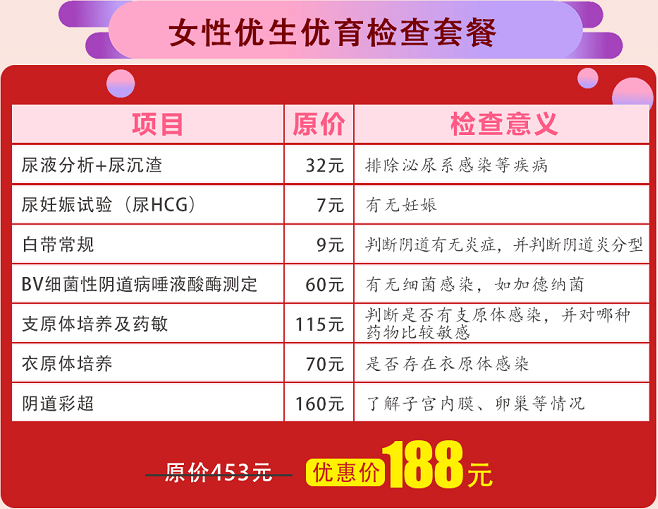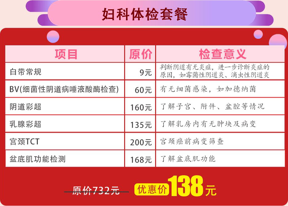 中秋节、国庆节接踵而来,为庆祝佳节我院于9月10日~10月31日期间,隆重推出“妇科体检套餐+男科体检套餐+早孕检查套餐+优生优育全套体检+女性全套健康体检套餐”的优惠活动,多种套餐供您选择,为您的节日送上一份健康保障,增添一份平顺心安!