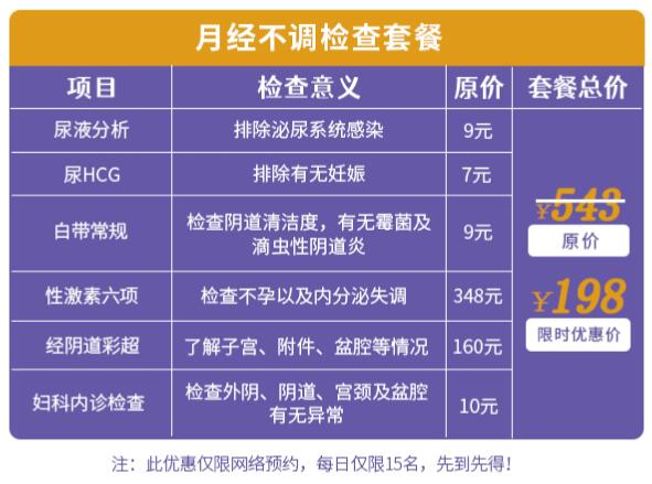 我院限时推出198元的月经不调检查套餐,名额有限,先到先得!