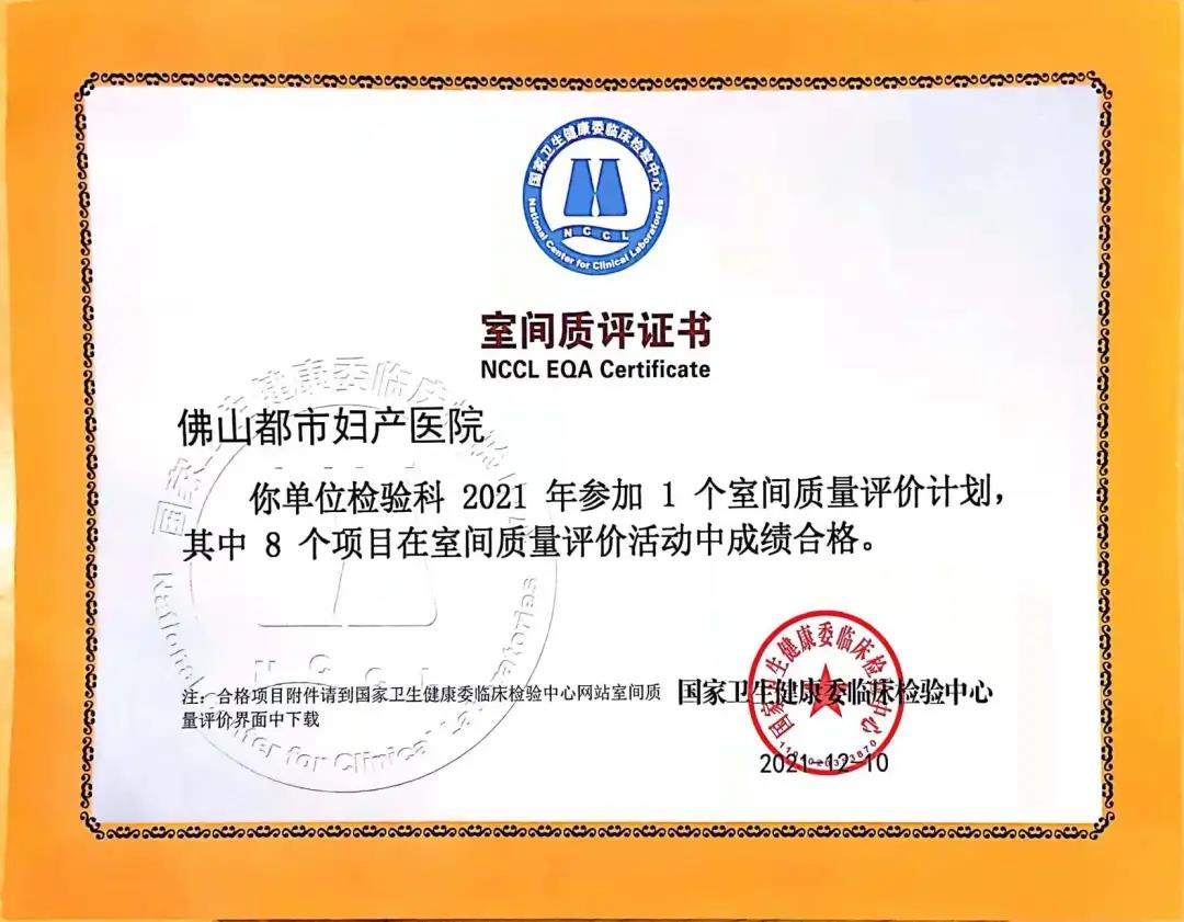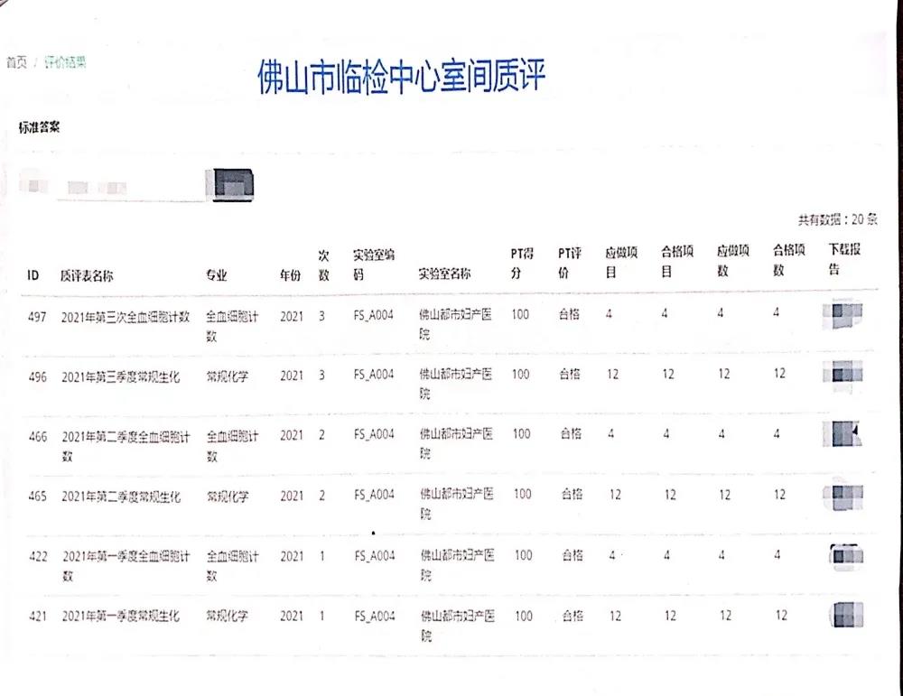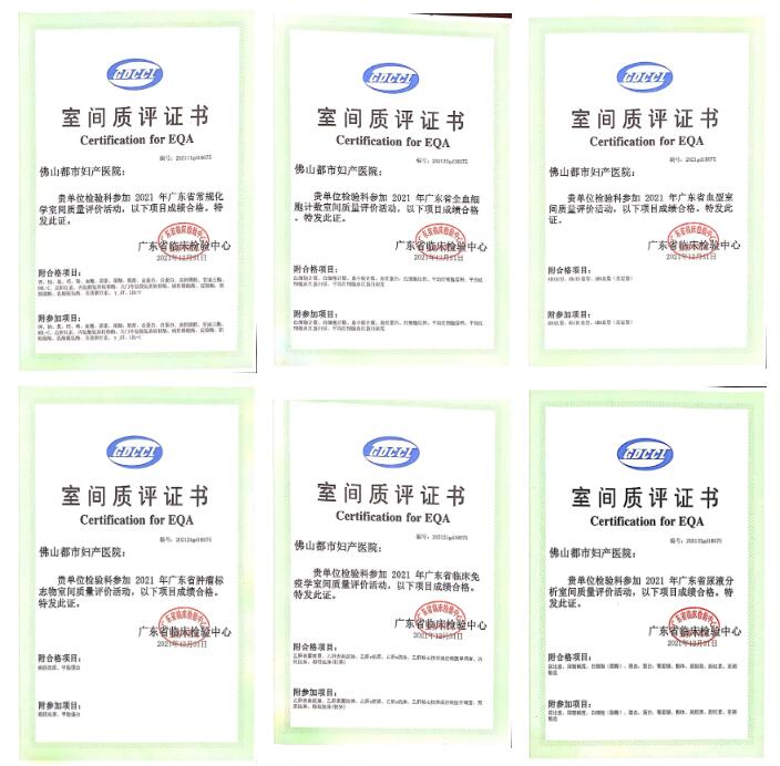 热烈祝贺佛山都市妇产医院检验科荣获国家卫健委临检中心、广东省临检中心和佛山市临检中心多个室间质评证书!