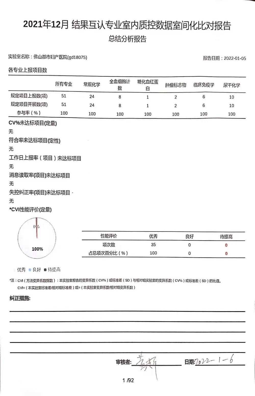 检验结果互认、室间质评顺利通过,这是各级临检中心对佛山都市妇产医院检验工作的肯定,同时也归功于医院检验科在样品管理、检测流程、室内质控、仪器校准、人员培训等方面高要求、严执行;在今后工作中,检验科将继续努力,严把质量关,不断提高检验质量,为临床、为患者提供更加准确及时的检验报告,做好健康“侦察兵”!欢迎广大患者就诊咨询!