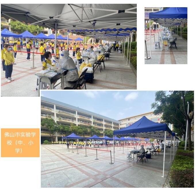 3月18日,第三、第四批核酸采样队伍分别集结奔赴佛山市禅城区张槎中心小学和佛山市实验学校(中学+小学)开展核酸采样工作,护航校园安全。