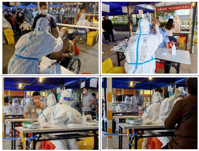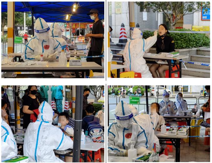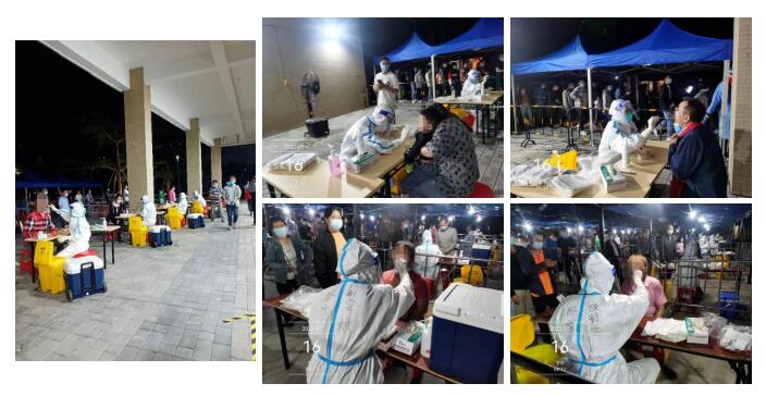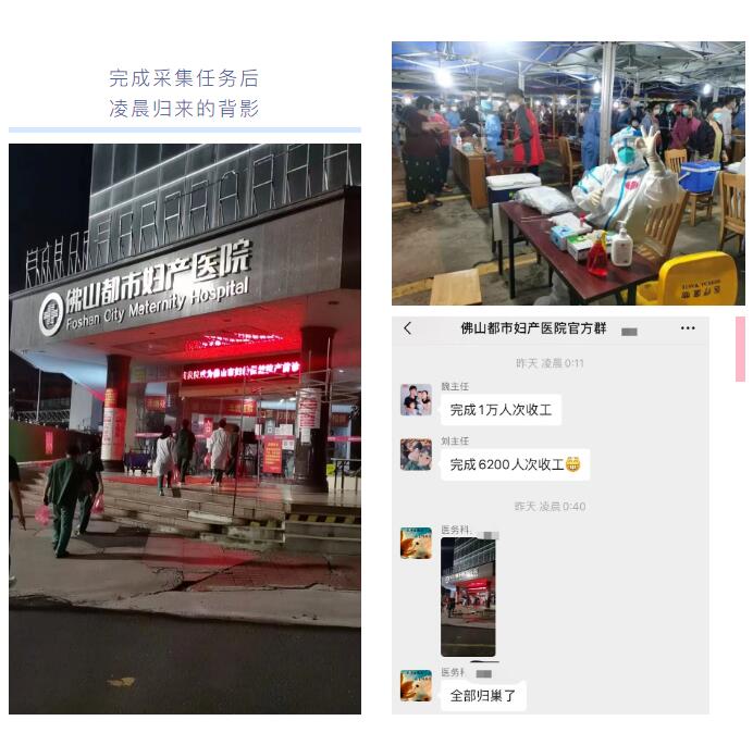 为全力支持我区疫情防控工作,根据上级部门统一工作部署,16日—17日,佛山都市妇产医院响应紧急号召,精锐尽出,冲锋疫情防控第一线。两天时间,都市人紧急“出征”,“兵”分14路,支援辖区抗疫;约出动医务人员80人次,共计检测近50000人,高质、高效完成本轮大规模核酸采样任务。