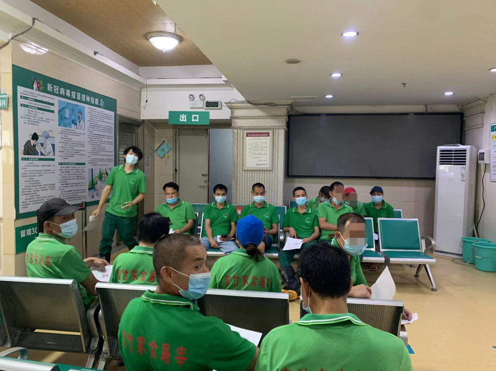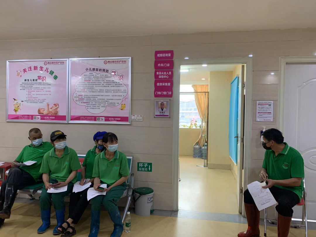 2022年6月12日上午,广东官付家禽屠宰有限公司60多名员工来到佛山都市妇产医院食品从业人员体检中心分批进行每年一次的健康体检。