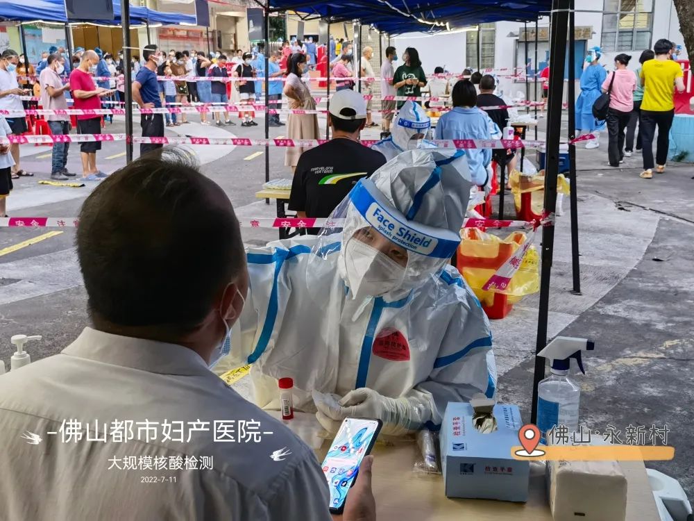为全面筛查疫情传播潜在风险,守护好百姓生命健康安全,7月11日,祖庙街道区域开展新一轮大规模核酸检测工作。按上级部门统一安排,佛山都市妇产医院临时抽调26名医务工作者,紧急奔赴永新村核酸采样点,开展长达六小时的高温下的核酸采样工作。