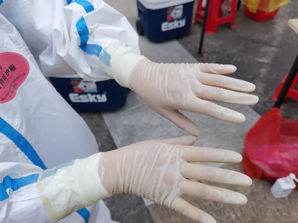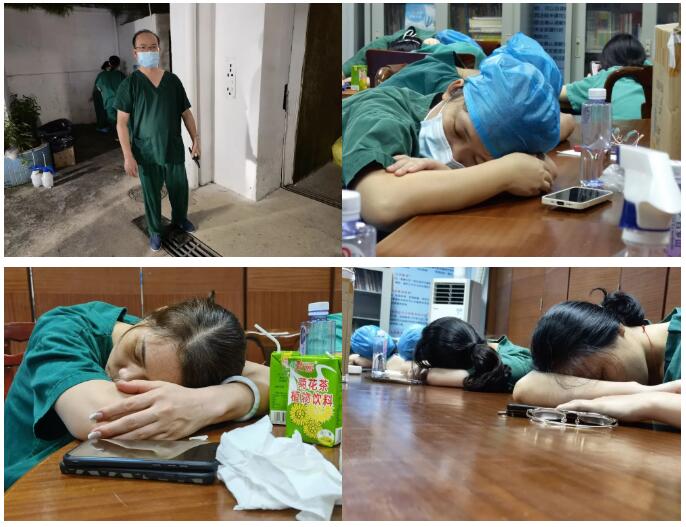 当采样完成脱下防护服后,大家的手掌已被汗水泡得发皱发白;当高度集中的精神松懈下来,姑娘们累得在休息间都能趴着睡着。