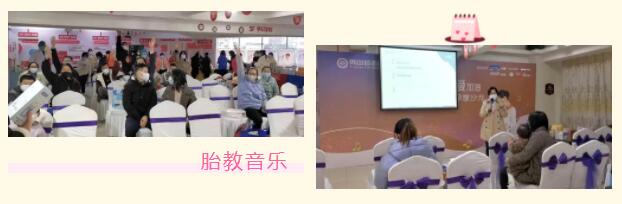 课程中,老师带着大家一起欣赏音乐,打节拍,跟宝妈、宝宝交流,宝爸宝妈们愉快地聆听音乐,打着节拍,时而抚触肚子里的宝宝,场面十分的温馨。
