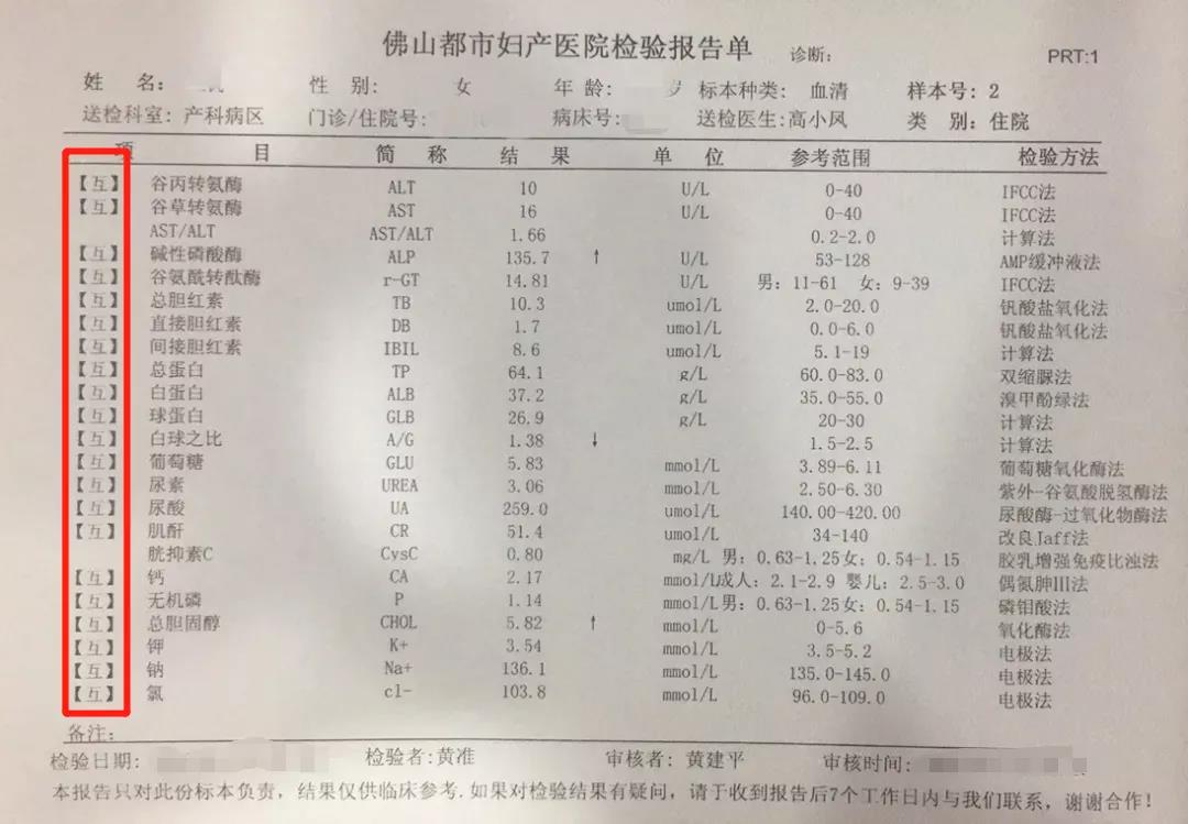 根据规定,各有关医院须在检验报告单中已申报为互认的检验项目前均添加【互】字作为标识,这意味着这份报告单可以在佛山市内任何一家已加入检验结果互认的医院得到认可。