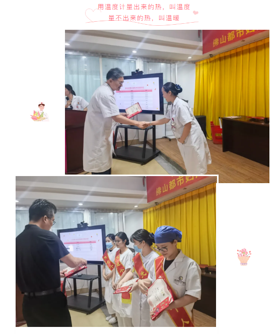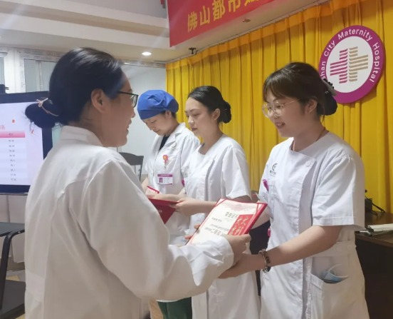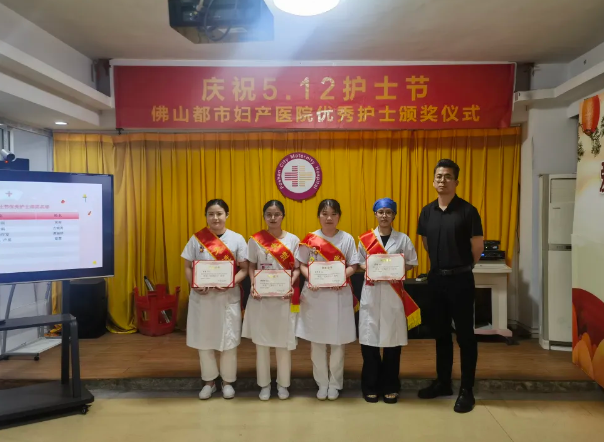 佛山都市医院副院长詹少勇为优秀护士颁奖,她们分别是手术室蓝慧、内科黄青、输液室谭丽婷、妇产科住院部古银青。詹院长激励临床护士,要践行护士初心,保持职业热情;提高患者满意,保持护理温度;关爱个人健康,保持阳光心态,全院护理人员用先进的护理理念、精湛的护理技术、优质的护理服务扎实推进各项护理工作,为医院高质量发展再写新篇章!