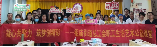温馨提示:  为更好的关爱职工,提升祖庙辖区职工工作、生活方面的综合素质,增强职工凝聚力,5月24日下午,祖庙街道总工会莅临我院开展职工生活艺术公益课堂,帮助都市职工陶冶情操,缓解压力,提升职工们内心的幸福感,