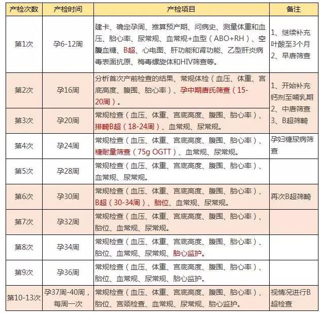 孕期产检什么时候做?做什么?一张表格告诉你!