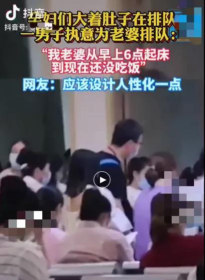 视频内容大意是说:产科一向是禁止男士入内的,但是一位男子却执意要入内。原来是由于产检的孕妈太多,男子的妻子早早来此等待,却迟迟轮不到,妻子又累又饿,男子十分心疼,便要求帮妻子排队。