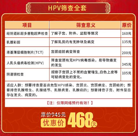 有性生活的女性定期做好妇科检查,帮助及时发现妇科疾病,若是发现患急性宫颈炎的女性要积极配合治疗,避免转为慢性宫颈炎。如果有条件的女性朋友,每年定期做一次宫颈癌筛查!以下是我院2022年推出的宫颈癌筛查套餐,您可以根据自己的需求选择!
